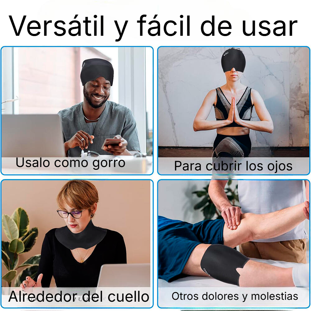 Este gorro ofrece una doble acción terapéutica: frío para calmar el dolor punzante y calor para liberar la tensión acumulada.